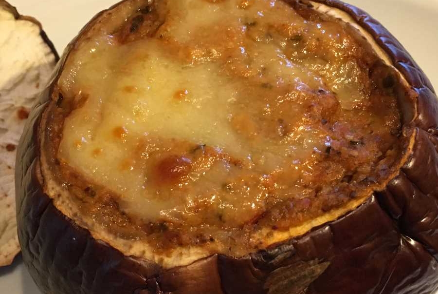 Disponete le melanzane in verticale in una teglia sufficientemente stretta per non farle rovesciare. Versate sul fondo della teglia un bicchiere d’acqua leggermente salata, irrorate le melanzane con 2 cucchiai d’olio d’oliva e cuocetele in forno a 180°C per 30-40 minuti.